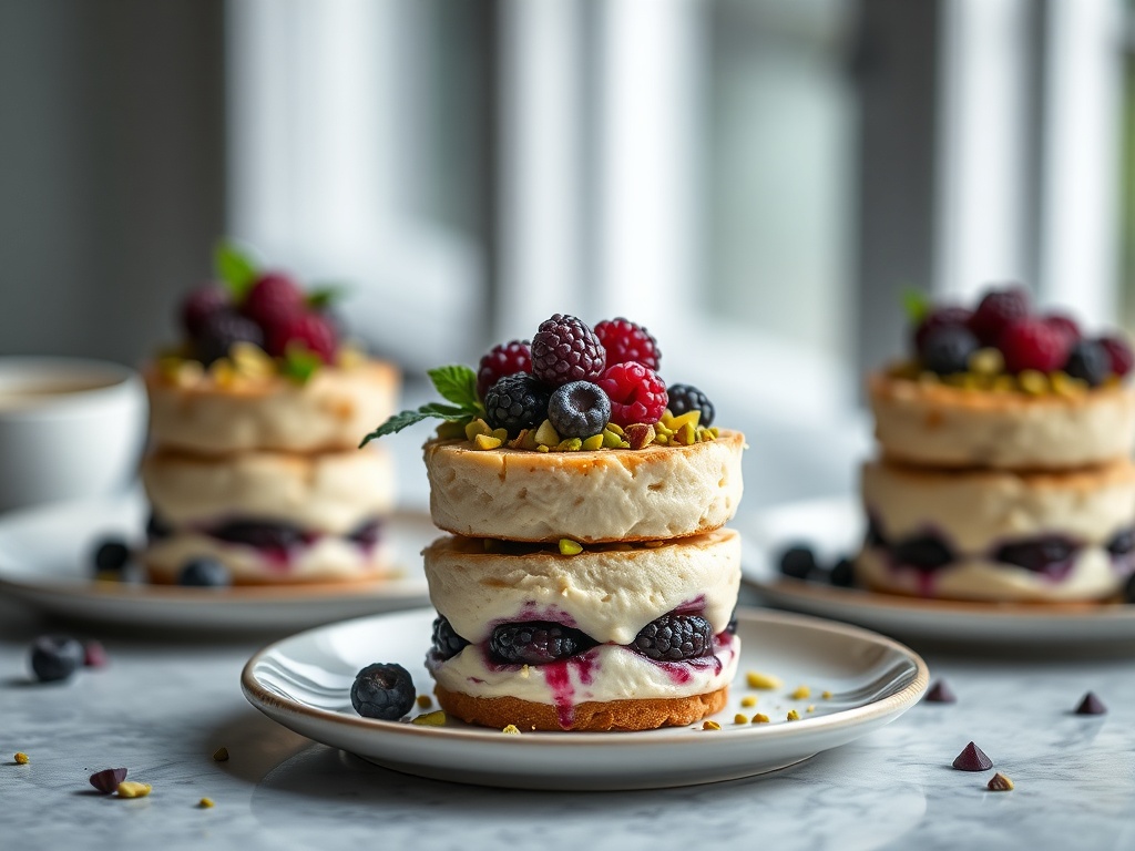 Introduction Prepare to be utterly captivated by a dessert that is as visually stunning as it is delightfully delicious: Pistachio & Blackberry Cheesecake Towers. Imagine delicate individual cheesecakes, each a …