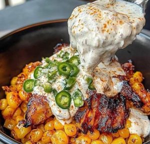 Grilled Chicken Bowl with Corn, Jalapeños & Creamy Sauce This vibrant and flavorful grilled chicken bowl brings together juicy, spiced chicken, charred corn, zesty jalapeños, and a creamy, tangy sauce. …